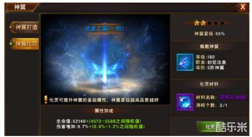 1.化灵可以提升神翼的基础属性,神翼星级越高品质越好。
