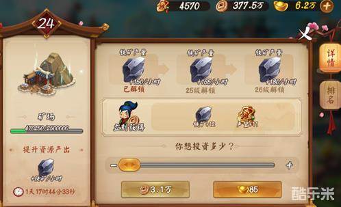 3.投资相关主城建筑可直接获得资源,并在一段时间时间内增加资源产量。
