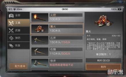 篝火制作方法:只需要一些木头就可以获得,木头还是非常容易得到的,所以性价比还是非常高的。