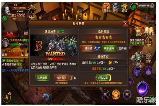 2、悬赏任务一共有5个星级,任务星级越高,完成任务后获得的奖励越多。可以花费钻石或者金币刷新星级。