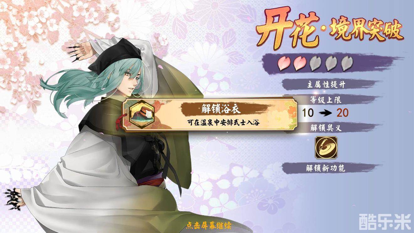 通俗来说,开花就像是给自己的武士提升星级,当星级提升到顶点也就算是这名武士的培养已经完成,而当玩家通关主线剧情1-6,解锁开花功能。当武士达到10级时,可以让武士通过“开花”达到下一境界。武士开花后可以提升等级上限、获得大量属性、及开启技能。点击“武士”→点击“开花”标签页→集齐足够的材料→点击“开花”。