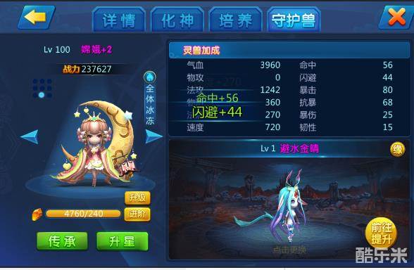 守护兽可以领悟潜能、升星、进阶来提高战斗力,守护兽的属性越高,被守护的徒弟的属性加成也越多。