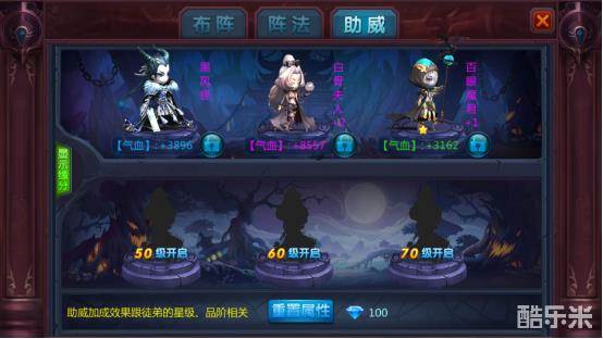 玩家拥有6个助威位,助威的徒弟可以补充徒弟的缘分,助威的徒弟无法出战。