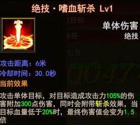 答:魔法王座绝技·嗜血斩杀是我们魔法王座新开系统绝技的其中一个主动绝技,可对敌人造成斩杀效果哦~