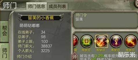 师门系统在玩家达到60级,并且拥有32战绩点才能创建,战绩点是通过每周三和周天的华山活动获取,华山的第一可获取32点积分,第二名16点,第三名12点等等,师门中分为掌门和弟子两个职位,掌门可激活师门里面的师门技能,然后加入该师门的玩家都可以去学习师门技能,师门技能的学习和升级都需要消耗薪火点,薪火点是根据玩家的在线时间获得。师门里有强力的技能,学习师门技能可以提升自己的战斗力。