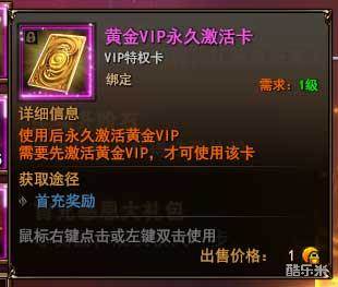 在此要特别提醒玩家注意的是:玩家如果没有开通黄金vip,那么使用激活卡,是没有任何效果的。
