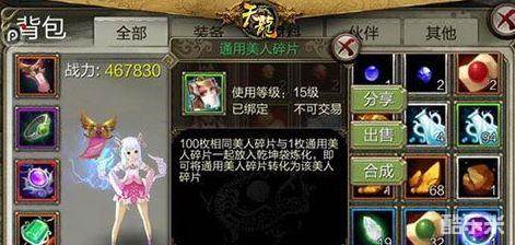 眼睁睁看着手里的199个美人碎片却不能合成完整美人,心里欲哭无泪?不要难过了!新优化后只需再拥有一个通用美人碎片,将100枚相同美人碎片与1枚通用美人碎片在乾坤袋中炼化就可将通用美人碎片转化为该美人碎片!再也不用苦寻那关键的1个美人碎片啦!
