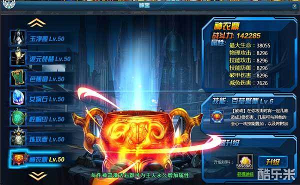 《热血街机》全新神器-神农鼎上线,该神器的被动技能为会心一击,14万战力轻松得。