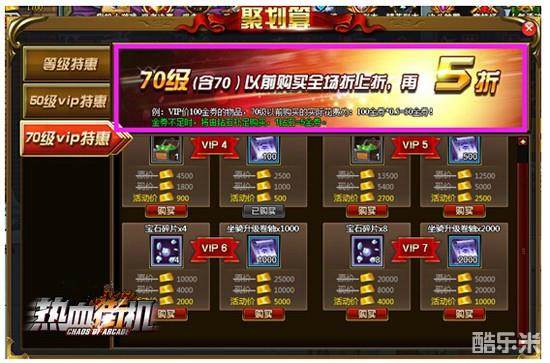 然后,我们再看聚划算中的等级特惠和VIP特惠,千万不要漏掉,能卖的全部买了。那么小伙伴们肯定会问,金券如何获得?很简单,首先我们看大冲刺中会送金券,然后再看看,小游戏也会送金券。在看看签到,登陆都会送,如果金券不够怎么办?还可以补差价,用钻石补,钻石和金券的比例是1个钻石=5点金券。