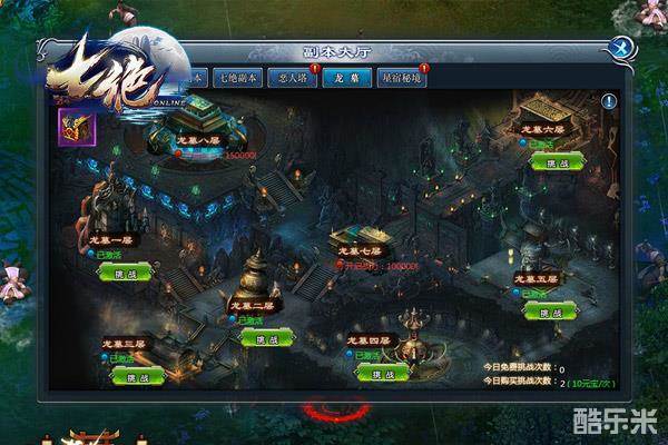 龙墓是龙甲宝箱的专属出产地,共分为八层,每一层都需要达到相应战力才能解锁。每位玩家每日均有三次免费挑战龙墓的机会,成功击杀BOSS就可以获得相应等阶的龙甲宝箱,如,一层掉落一阶宝箱,二层掉落二阶宝箱。