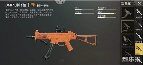 UMP9是冲锋枪中性能最完善的枪械,作为一把冲锋枪却有步枪的特性,而且冲锋枪的特性也都有。可以说是对新手最友好的一把枪,后座力很小,配件也都能装,非常的全面。带上这一把枪,新手也能吃鸡。
