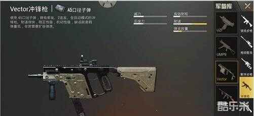 UZI作为游戏中射速最高的枪械,秒伤是非常恐怖的,而且后座力非常的小,在近战中往往能利于不败之地,但是打稍远一点距离的敌人就非常乏力了。可以在前期使用,相信很多新手玩家应该也都用过,这把枪虽然不能装倍镜,但新手玩家也会常常忽略倍镜的存在,所以非常适合新手使用。