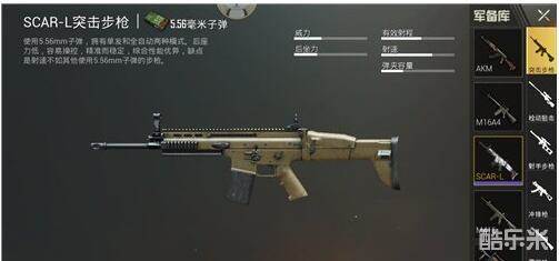 这把枪虽然和其他步枪相比,伤害很低,但它胜在后座力非常小,如果在加上一个垂直握把,后座力就更小了。满配比M416轻松的多,所以非常适合新手使用,可以不必花很多时间去搜配件,带着一把SCAR,可近可远,用起来非常的棒。