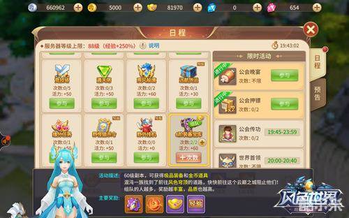 每击败一个BOSS,即可随机获得一次奖励,运气好的会直接获得橙装紫装。银月殿长老会根据通关速度对参与副本挑战的勇者们进行评价,更有额外奖励赠送哟~