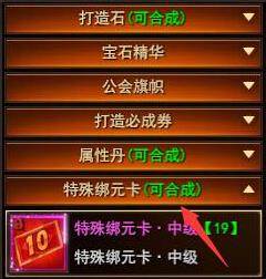 特殊绑元卡·中级需要消耗10张初级合成,并额外消耗5活力中级卡每次使用可获得10绑定元宝,每日可以使用20次哦~