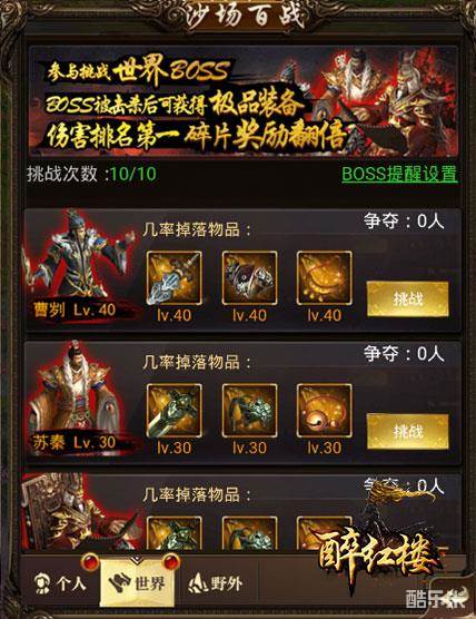 2、击杀BOSS可获得极品装备,伤害排名第一碎片奖励翻倍。