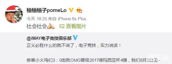 随后,OMG前打野柚子也转发并评论了本条微博,配图并附言:“社会,社会”