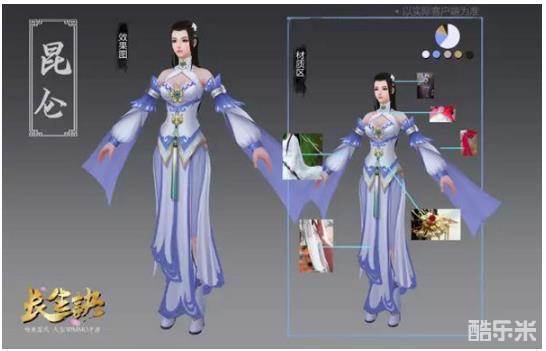 昆仑是《长生诀》中使剑的职业,其招式灵巧,来去如风,在速度和爆发上拥有极强的优势。女昆仑的角色采用了白色和蓝色相间的设计,修身的剪裁即体现出优雅气质,又不乏流畅战斗之感。腰间的流苏配饰带有女性的温婉,而当她持剑而立的时候,又有着江湖儿女的英姿飒爽。