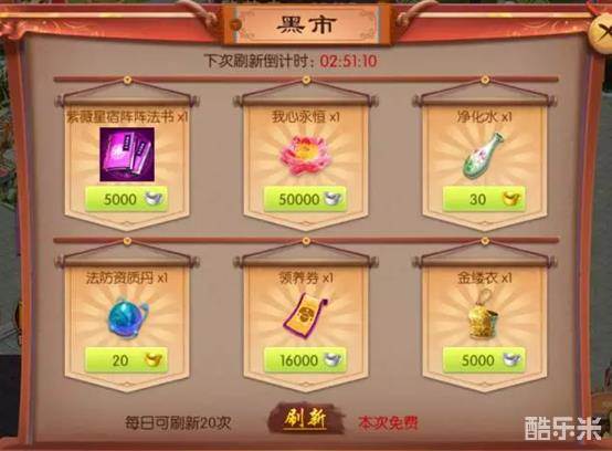 如果当前页面没有自己心仪的游戏道具,小主可以点击下方的刷新按钮,刷新后就会出现新的游戏道具。首次刷新免费,后面则需要消耗元宝才能刷新,每位小主每日只可以刷新20次。此外,系统每隔3个小时也会刷新一次黑市当前页面的游戏道具。