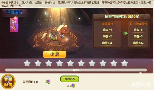 萌将神兽系统更新,所谓的神兽呢就是坐骑了。