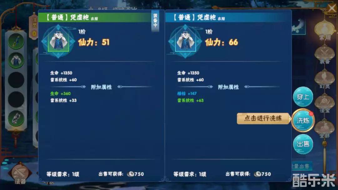 装备洗炼也就是将其他装备上更好的属性添加至自身所穿戴装备。传承其他装备的优秀属性,从而提升自身装备的仙力。
