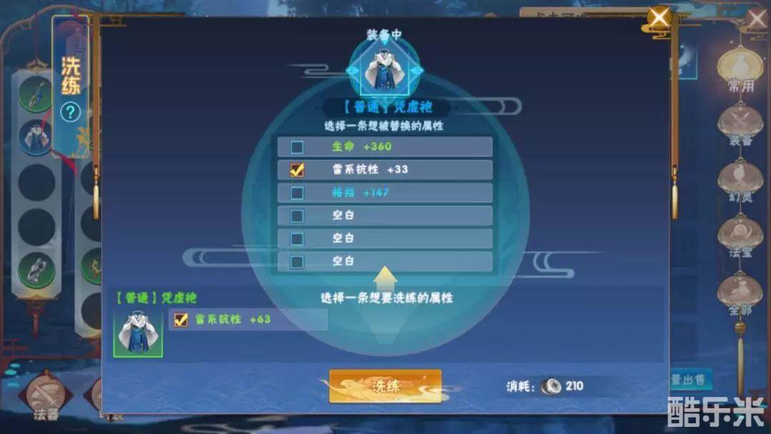 2、装备洗炼需花费一定的银两。