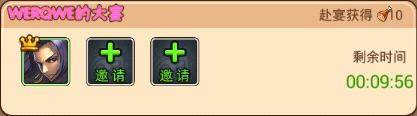 举办者:每多一人赴宴可额外获得3点体力。(如有4个席位,有2个人参与,时间到了举办者获得6点体力,参与者照常获得10个体力)。