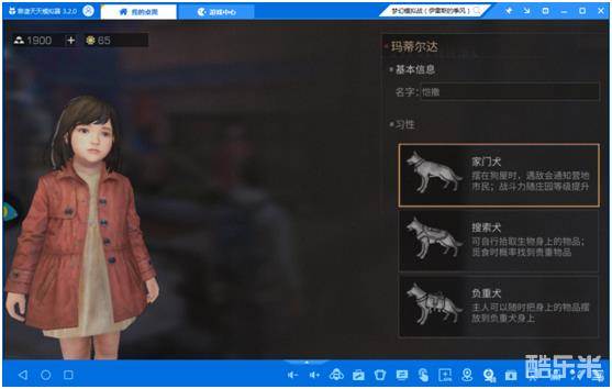 三种类型的犬习性,家门犬、搜索犬和负重全,对于种地盖楼的玩家,当然选负重,因为狗能帮你拿东西,搜索犬则是提高搜索稀有物品的几率。