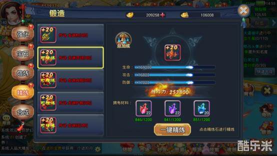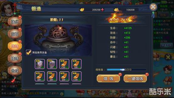 可以说锻造系统是游戏中,提升战斗力的主要手段之一,在这里,可以进行对角色装备的强化、宝石的镶嵌与合成(红装秘卷的合成也在这)、熔炼一些淘汰掉的坐骑、仙童等装备或一些道具(如神行靴)来提升熔炉的阶数还有对装备进行精炼来提升战斗力,下面让我来一一介绍。