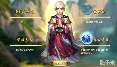 逍遥僧在觉醒后本身的破防系数进行了提高16.6%,这一点代表了逍遥僧的奥义对比以往可以打出更多的伤害。完全可以作为队伍中的主力输出来进行使用~