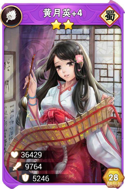 黄月英,《三国之乱舞》中战场强大控制型军师,黄承彦之女,诸葛亮之妻。江湖传言,一说她很漂亮,扮丑只不过为试探诸葛亮;一说她很丑,但是却有大才华,正是如此才与诸葛亮心意相通,情比金坚~ 不管哪个是真的我们不去探究,但是有一点还是非常真的,那就是诸葛亮很怕老婆!