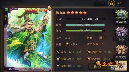 | 等级 | 与守军部队(PVP没有经验)战斗可获得升级所需经验。等级越高属性越强,武将可携带兵力越多。 |