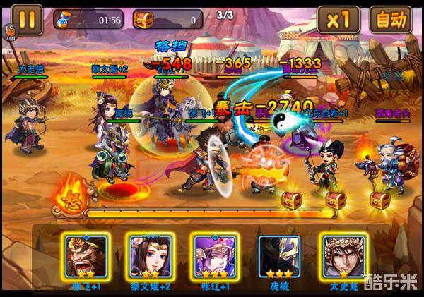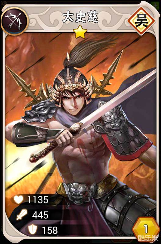 太史慈,《三国之乱舞》的沙场终结者,专注一个目标的多重打击设定,将瞬秒的快感展现的格外唯妙!可以说太史慈是《三国之乱舞》难得的火力型角色,四大技能均可能将火力点集中在一名敌人身上!高几率达成开局不久瞬杀一人的绝对优势!“掠江劲弓”、“狙击”、“致命一击”三大变态技能携手,配合自身280+的暴击值、20%的额外暴击伤害,相信谁都会对他爱不释手的!