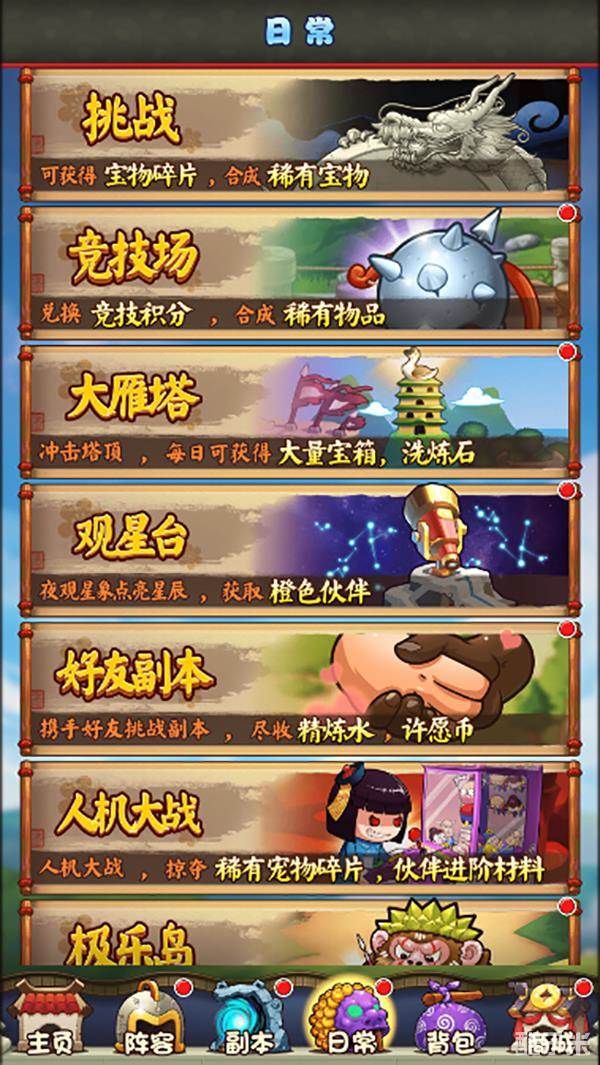 在【乌龙院之活宝传奇】中有着很多不一样的玩法,其中最多姿多彩的就是【乌龙院】中的日常玩法,在日常玩法中有着竞技场、爬塔、观星台等等各式各样的不同的玩法,这次我给大家介绍的就是日常玩法中的人机大战。