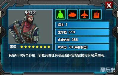 对于新手,一开始肯定使劲的升级建筑资源,一个劲的解锁高等级兵种。防御建筑都很低下,强烈建议对所有玩家来说,步枪兵是绝对要升级满星的,大家看以看看他满星后的所用资源与人口使用。虽然他很容易因为血少死亡,攻击力也小;但是他的288攻击距离还是很可观的,机枪兵、炮兵、喷火兵、恐怖分子、轻型履带车、火箭越野车、防空车、V3火箭车(表示V3木有机枪兵跑得快)机枪碉堡等群殴他们的状态下,完全不在话下,因为机枪兵占人口是最少的,用资源很少,而且一次打不过可以一分钟内继续集兵战斗,免费秒造兵的哦!资源少一样可以推平敌人,而且对后期探测敌方地雷是很实用的哦!损失几百,敌方却要损失几万。