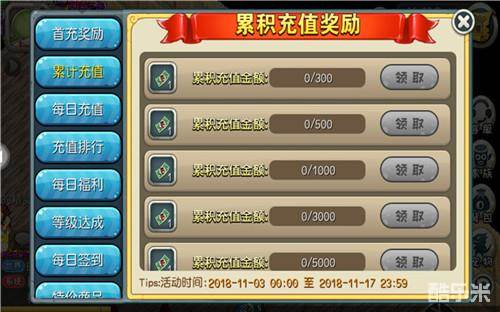 《原始守卫战》中新增开放累计充值活动,但是这个功能只在活动期间有效,活动时间为2018年11月03日至2018年11月17日晚24:00,为期为15天。石灰大大们,一起冲鸭!成功充值后可在游戏内福利界面领取对应累计充值奖励。累计充值300元额外赠送5张象卷!累计充值500元额外赠送10张象卷!累计充值1000元额外赠送20张象卷。累计充值3000元额外赠送30张象卷!累计充值5000元额外赠送50张象卷!累计充值10000元额外赠送80张象卷。团队真是砸锅卖铁给大大们谋福利啊!多多福利,强势来袭!