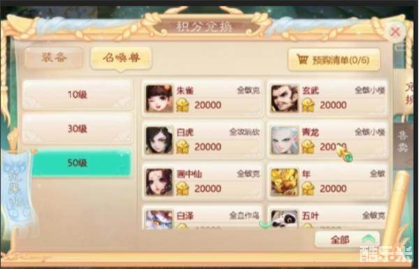 2、敏青龙、敏年、敏朱雀等(20000分)。