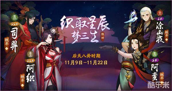 11月8日,《神都夜行录》进行了一次重大的版本更新,除了正式开启“织取星辰梦三生”特别活动的“后天八卦”阶段之外,全新强力妖灵司羿也将来到中土神州,并且获得召唤概率UP加成,等待降妖师们前来降服!
