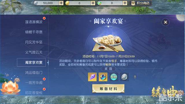 除了拼运气的活动,《镇魔曲》也为天命者们备下了其他福利多多、乐趣不同的玩法:“阖家享欢宴”里,天命者们帮助石头筹备饺子材料即有丰厚奖励领取;“义气揽云天”中,组队挑战妖魔或帮助其他天命者完成挑战,均有珍稀道具送上!