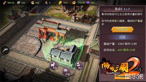 在主公的封地里,有几种必须的资源,分别是铜币、物资、矿石、毛皮,分别对应的产出建筑是集市、伐木场、矿场、牧场。别小看这些基础材料,在游戏中这些资源可以帮助你建造升级其他建筑物及装备等,快速提升主公战斗力。
