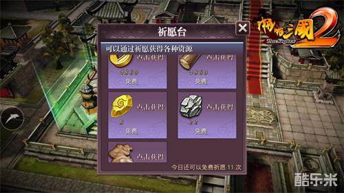 5种资源获得的不平均,就差1点矿石不能建造新的建筑怎么破?这时候祈愿台的作用就非常重要了。祈愿台每天都有5次免费的机会让玩家获得5种资源中的一种。千万不要错过呦~另外,升级祈愿台还可以额外增加每天免费的祈愿次数。