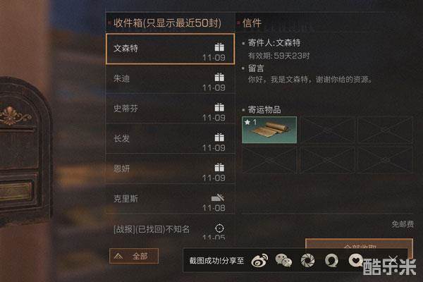 当达成5000好感度的时候通过邮箱大家可以接收到来自文森特的邮件奖励。“你好,我是文森特,谢谢你给的资源”,并附赠奖励物品给大家。