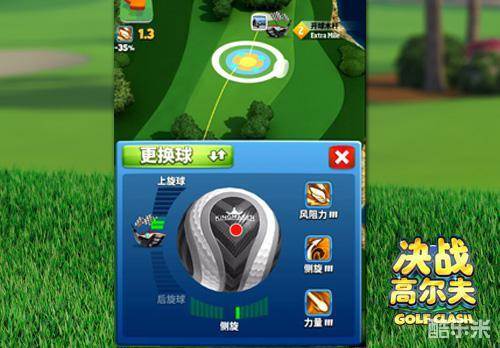 这里也简要说明一下,高级球加成属性的功效。首先是风阻力,《决战高尔夫》中的风力会影响到高尔夫球的第一落地点,在面对风力较大的地图时,就可以选用有风阻力加成的高级球;侧旋属性会影响到高尔夫球的飞行轨迹,当玩家需要克服地形障碍,如绕过树丛、沙地,就需要选择带侧旋属性的高级球,并在击球时将侧旋值拉足;高级球的力量加成,则会影响到球杆的击球距离,让玩家击出的高尔夫球更加接近球洞。