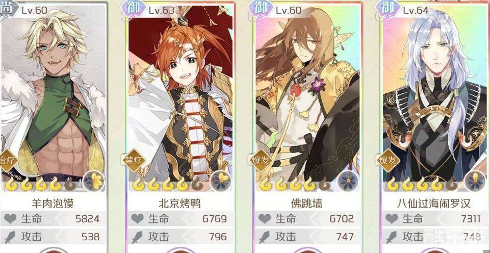 上面是我的三测一队阵容,适用性还是比较强的就是不好凑,推图主要考虑用烤鸭二技能和佛跳墙三技能眩晕拖节奏