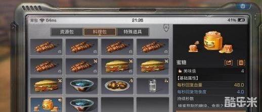 蜜糖可以每秒恢复48点血量和4点饱食度,总共持续5秒钟。