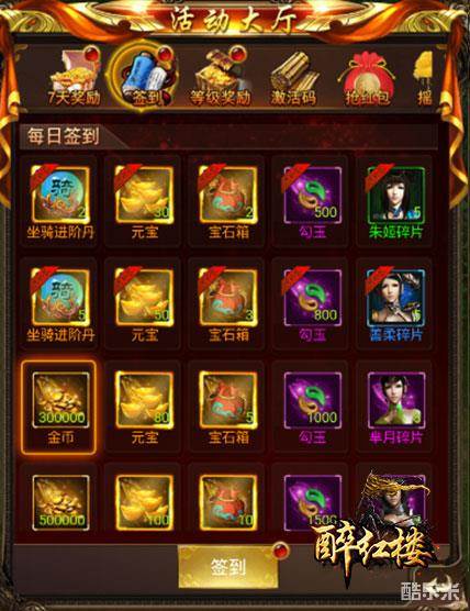 玩家每天登录游戏都可以获得丰厚奖励,连续七天,天天豪礼送不停,元宝、装备、美人碎片,更有大量珍稀材料等你来拿。