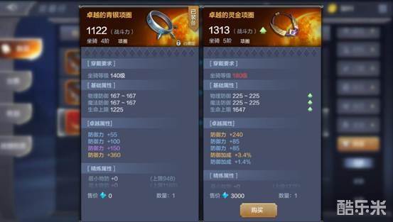 由于每种位置的装备基础属性都不会变化,因此我们区分装备好坏的标注那自然就放在了“卓越属性”这一点上。以上图为例,单就卓越属性来看或许左边的装备能够提供更多的防御力加成,而右边的装备虽然提供的防御力较低,但却附带了4.8%的防御加成,在基础属性较高的前提下,百分比提升能够比固定值提升带来更多的收益,因此我们需要根据自身目前的需要来判断。一般情况下来说,百分比加成肯定要比固定加成来得更好。