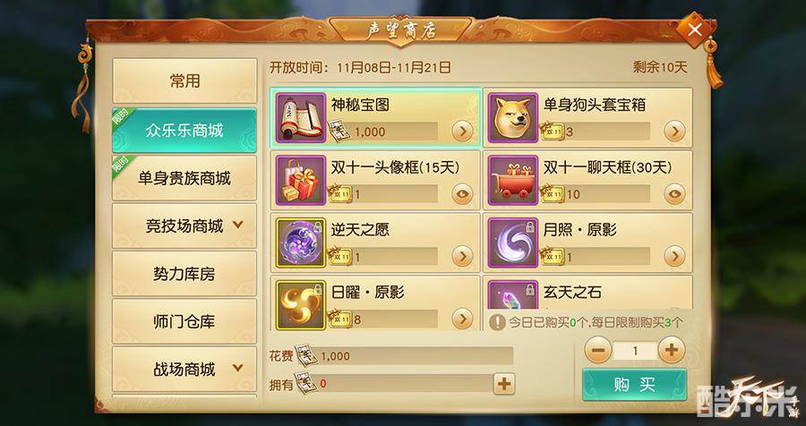 shopping狂欢节双十一已经过去,少侠你买到自己心水的东西了吗?《天下》手游最划算的“双十一豪礼”大礼盒依然在售,走过路过不要错过!开启礼盒不但可以获得尊享礼卡、雷音溟钻等珍贵道具,还有机会抽到单身狗头套宝箱和福运购物车等精美时装坐骑。