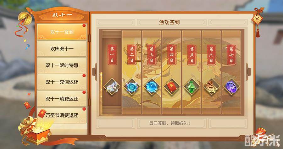 付出有回报,劳动最光荣。在双十一期间每天坚持签到的大荒劳模们,将依次获得五彩露、化雪丹、元魂精魄、众乐乐红包、瑶池仙露、和月威溟钻等奖励。如此丰厚的奖励只要签到就能领取,各位少侠一定要来噢,再也不用掏空钱包去剁手啦!