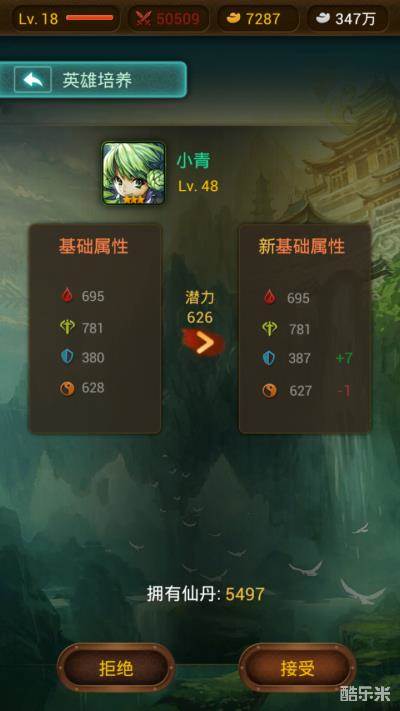 最后,你已经有了一个等级高的好卡牌,再来培养一下,就更是如虎添翼了。培养可以快速有效的将英雄的潜力值转化为看得见的攻、防、血、法基础属性,还可以根据卡牌的特点和自己的需要,将某些属性转化给另一个属性。培养需要消耗仙丹,在另一篇文章《仙丹获取全攻略》中讲过如何快速获得仙丹。有了仙丹后,建议大家一个一个的来培养,先着重培养一个,培养好了再培养第二个第三个,这样效果更明显。在卡牌选择方面,选择那些以后可能会一直用的卡牌来培养,免得浪费仙丹。